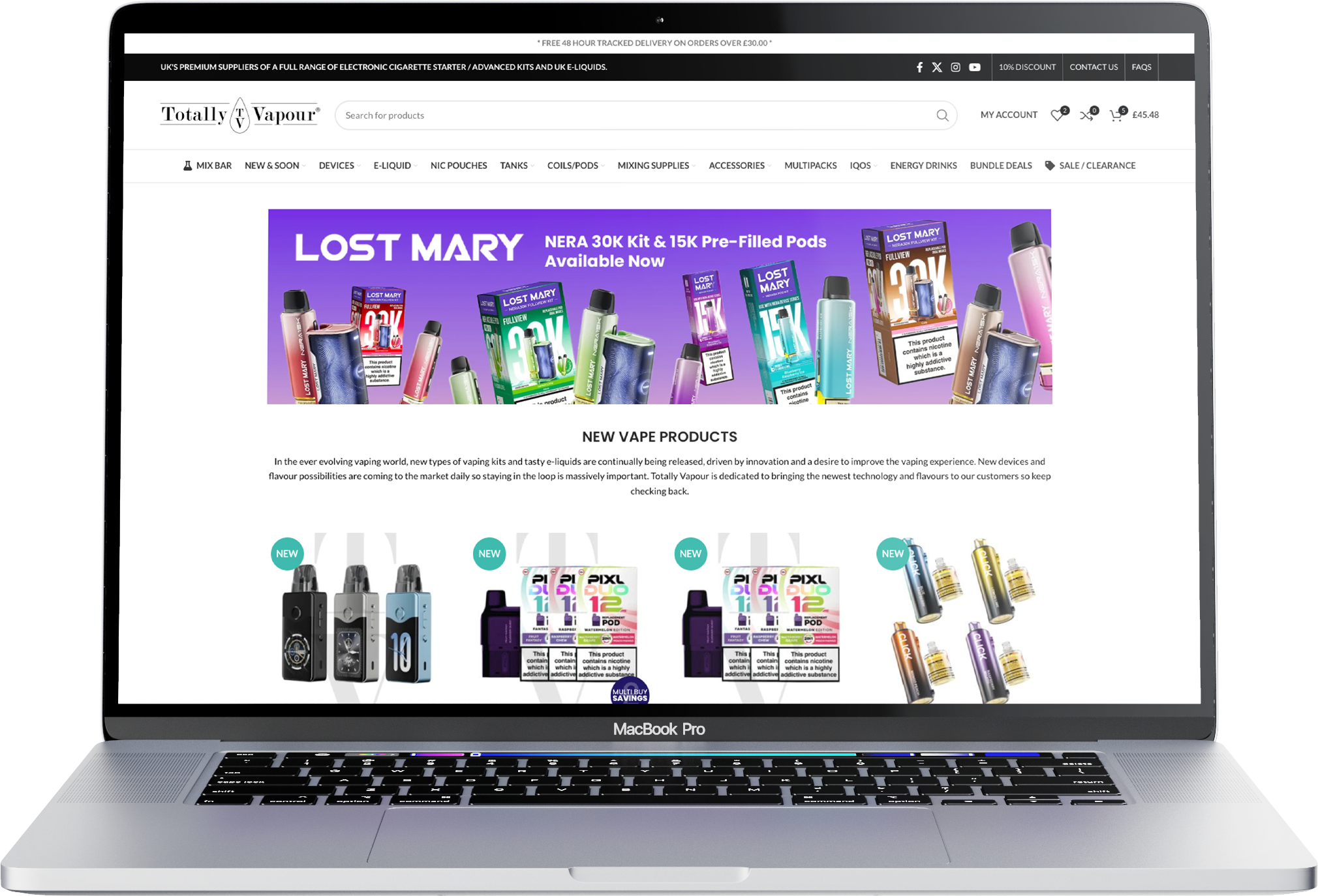 Totally Vapour is an on and offline retailer of vapes based in Birmingham. Supplying 1000’s of vape kits, e-liquids and accessories. Totally Vapour has ambitious growth plans and aims to become the UK’s leading supplier of vape products.