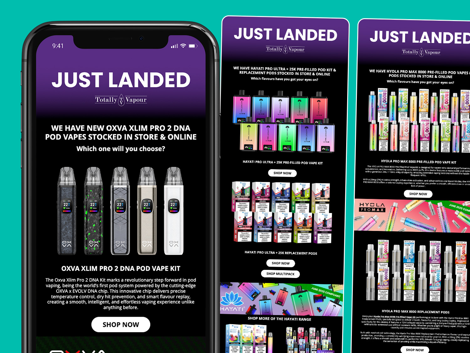 Increased sales have allowed Totally Vapour to capture more customer data, linking into our CRM System, helping to grow email marketing lists. As a result, they are now starting to see an increase in email marketing revenue due to communicating with a more engaged audience (previous buyers being made aware of other relevant products and services).